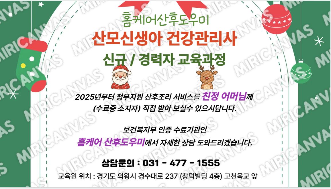 홈 케어 산후도우미의 교육생을 모집합니다.